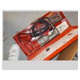 GARAGE: Coleman Power Mate air compressor, Ryobi 16" Scroll saw, utility rolling cart, Dayton Heavy Duty Charger/Booster, Milwaukee Heavy Duty Right Angle Drill, Hermetic Model A-20 Compressor analyzer, All American Pip cutter, shop vac, 2 grinders one new in the box (no motor with it the other has a motor), old sump pump, porta pump, Robinar high pump, Delta drill press, Welding helmets, air hoses, garden hoses, hard hat, extention lamps, plumbing items (some 10' lengths of PVC pipe), electrical items, telephone items, old antique phones,and rolling a work bench. . Campbell air sie grinder, Randolph 3 fire extinguisher, full propane bottle, yard tools, gar lots of drill bits (new and used) of all sizes and for any job necessary, gun cleaning kit, Dasco arc punch, Amprobes, air tools, bottles of Freon, air tools, tool boxes, clamps, hard hat, metal yard birds, air hoses, I'm sure I have forgotten many things plus repeated myself, but there is so much in this sale it was almost overwhelming.