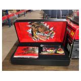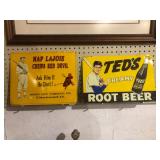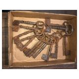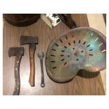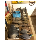 36" porcelain Coke button, porcelain airline signs, misc advertising tin signs, Kendall service station caps, Boxer cast iron door stop, Tupperware toys, Nascar die cast cars, Nascar and other sports trading cards, duck decoys to include Herters and Flambeau, WWII wood foot locker, Navy dress blue uniform, antique door w/ etched glass, Owen Gromme wildlife prints, New Home treadle sewing machine, implement seats, 18KT gold necklace, 18KT gold ring, 10KT gold earrings, and misc jewelry, Wedgeway advertising double axe head, Native American arrow heads, plaster/chalk religious figures, Sega Genesis game console, kids toys, Sanborn 30 gal. air compressor, shop and hand tools, 36" exterior doors, kitchen table and chairs plus more.