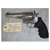 374. Smith & Wesson – Mod. Lady Smith 3rd Model – 22 Long Cal. Double Action Revolver – w/3 ½” Barrel – Nickel Finish – w/Wood Grips w/S&W Medallions – Note: Missing Screw