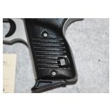 25. Sig Sauer – Mod. P-210 – 9mm Cal. Semi-Auto Pistol – w/4 ¾” Barrel – Matte Blue Finish – w/Sig Sauer Target Wood Grips – w/2 Mags – w/Adj. Sights – As New w/Case & Manual