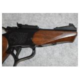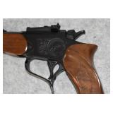 14. Thompson Center – Mod. Contender – 375 Win. Cal. Single Shot Pistol – w/Super 14” Round Barrel w/Sights – Blued Finish – w/Engraved Receiver – w/Uncheckered Wood Grips – w/Original Box