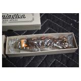 377. Remington – Mod. Nylon II MB – 22 Cal. Bolt Action Rifle – w/20” Barrel w/Sights – Blued Finish – w/Checkered Capped Mohawk Brown Stock w/White Accents – w/Detachable Magazine – Note: Trigger Guard is Cracked