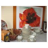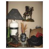 Beautiful Drexel Heritage casual dining tablewith two leaves and six chairs, coffee table sets, Jay Bird paintings, leather loveseats, bedroom set, King mattress set, much metal art wall pieces. High end patio furniture, sofa table; bakers rack; workshop cabinet; tools; benches; bookcase; electric golf cart; beautiful decor and household items throughout home; much with a Southwest flair.