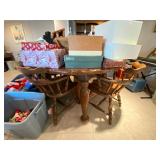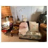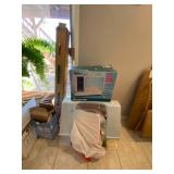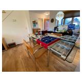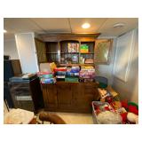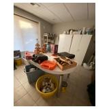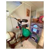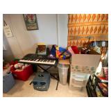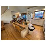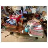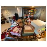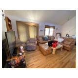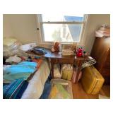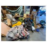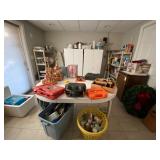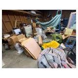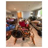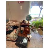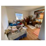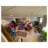 Folding chairs, indoor plants, globe, shoes, boots, television, vintage wood furniture, blankets, piano, board games, exercise bike, office chair, book shelf, work shop tools, ironing board, cleaning supplies, bed set, vacuum, dresser, end table, glass sets, mirrors, sofas, tv stand, dining room table and chairs, knives, glass serving ware, lamps, clothing, dresser, mirror, wall art, shop vacuum, exercise mat