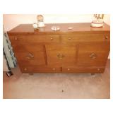 Catalog : Furniture: Mid- century Danish modern dining table /buffet and hutch, handmade end tables and coffee table, antique phonograph cabinet, Mid-Century Modern full size bed and night stand, and dressing table, blonde oak dinette set, antique walnut trunk, antique walnut hall or console table, desk and chair, vintage wood waterbed frame and more |