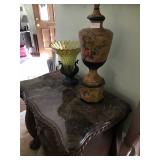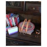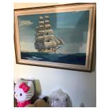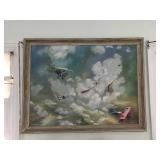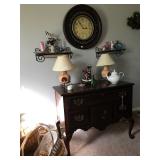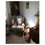 Important Mt Holly Artist 1918 - 1987, John Richard Phares; Farm scenes, nautical, and military air paintings (In this location 3rd generation Artist). Round oak and clawball table, Cherry drop leaf table with board, 6 ladder back chairs. Antique clocks; Insonia, Seth Thomas, plus other country clocks. Poster canopy bed, High boys and low boys, walnut dressers, High wing back chairs. Collection of Rose China, Pottery China, and many collectables. Cast Iron figures and banks, Country garden needle point, Quilts, Lots of yarn, Knitting accessories, sewing machine. Cut and colored glass, lamps, Books (old and new), Haskle Jewelry. Pair of contemporary love seats, accent tables, pine hutch and corner cabinets. Toys and Dolls (old and new), plus so much more.