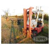 FORKLIFTS Hyster E45Z-33, hrs. unknown, electric forklift, 2,500 lb. capacity @ 24" load center, S/N G108N01634C Nissan NF01M10, LP forklift, 3,000 lb. solid tires, S/N NF01-025290 (no engine cowl or seat) Boom Lift, 18', on cart, 10.00-20 tandem tires