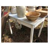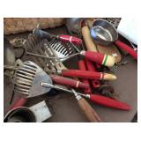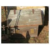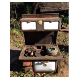 This auction will consist of items from Hazel's cabin, the old store and from the 2 old buildings out back! Featuring Primitives, grain bin, farm table, corner cabinet, coffee grinder, baskets, farm chairs, folk art, pottery, sponge ware, trunks, cast iron, splatter & enamel ware, oil lamps, primitive cabinets, 1950's kithen tables, enamel gas cook stove, old wood cook stove, old sinks, sewing items, quilts, red handle utincles, green handle utincles, handmade bird houses, dough bowls, primitive decorations, old doors, old windows, advertising tins, silver coins, and so much more!!! Vist our Facebook page to see more pictures