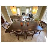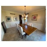 Dining Room: Saloom wood dining room table, saloom dining table chairs, framed art and prints
