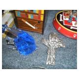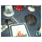 Vintage Oriental Hand Painted Cabinet, Wood Wall Clock, Several Christmas Items, Art and Collectable Glass, Framed Prints and Signs, Lamps, Baking and Cooking Items, Hand Painted Glass Eggs, Dachshunds Tic-Tac-Toe Game, Wood Music Box, Pottery, Stamp Collection, Jewelry, Candle Holders, Several Brass Items, Tape Gun, Tablet Cases, Mirrors, Crystal Wine Glass Sets, Bottles, Glass Lamp Shades, Heavenly Blessing Nativity Figures, Keepsake Ornaments, Wood Candle Wind Mill Merry Go Round, Organizer Full of Craft Items and Paint, Luggage, Christmas Plate Set, Children’s and other Books, Window Blinds, Vintage Figurines, Ruby Glass, Dolls, Christmas Box Lots, Canning Jars, Badminton Set, Pet Door with Glass Spacer, Camo Tent, many Storage Tubs, Old Chairs, Trash Compactor, Flat Screen TV, Vintage Flatware Set, CD’s, Toys, Singer Sewing Machine, Clear Back Bird Houses, Ceiling Fan, Cake Pan Several Eiffel Tower & French Items, Towels, Scarves, Bedding, Match Book Collection w/ Display Box, Larger Tapestry, Boat Oars, Ridgid Circular Saw, Planters, Back Pack, New Wet Saw, Light Fixtures, Plant Food, Fire Extinguisher, Re-Chargeable Lights, Deck Screws, and Lots More including Our Four for a Dollar / Free Tables.