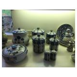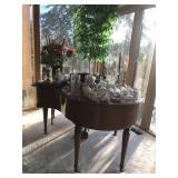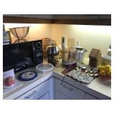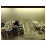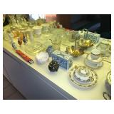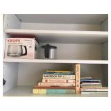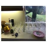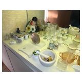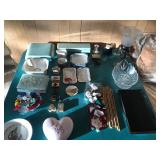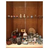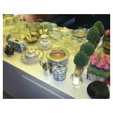 Kitchen: Dishes, plates, tea cup sets, glassware, ice buckets, cookbooks, dining table and chairs