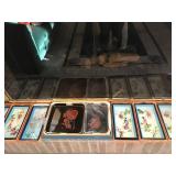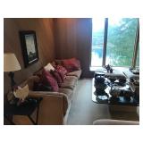 Living Room: Stationary, books, Movies, sofa, love seat, ottomans, pottery, vases, board games, card games, coffee table, vintage board games, ET board game, the mad magazine game, books, pottery, throw blanket, accent pillows