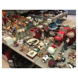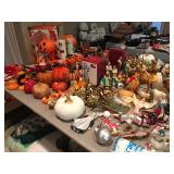 Master Bedroom: Purses, Christmas Decour, Halloween decor, Thanksgiving decorations, Dept 56 Village, quilt, Penn State, and table, flooring, stuffed animals