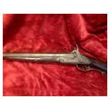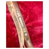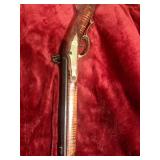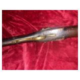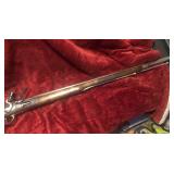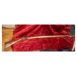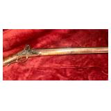 4. I believe original Unmarked Flint Lock Kentucky Long Rifle With Carved Initials On the Barrel Top and Ornately Carved Stock with Brass Hardware Unknown Caliber – Estimate $1000-$1500