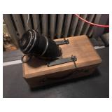 17. Vintage Coehorn mortar, 2 1/4” bore With carved wood chassis, Handles