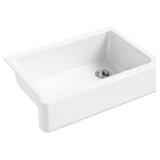 KOHLER K-5827-0 Whitehaven Farmhouse Self-Trimming Undermount Single-Bowl Sink with Tall Apron, White The Whitehaven apron front kitchen sink features a streamlined and versatile farmhouse style to complement any decor. A large single basin accommodates large pots and pans, while the sloped bottom helps with draining and clean up. Crafted from enamelled cast iron, this sink resists chipping, cracking, or burning for years of beauty and reliable performance. A standard apron front makes it easy to install on 33 inch apron front cabinetry. The Self Trimming(R) design requires only a simple rough cut, overlapping the cabinet face for beautiful results. This item is NEW. Please come Preview! No Refunds After Item Has left the Building. Verify the condition of your Item before you leave, Thanks. LARGE ITEMS MUST BE PICKED UP ON THE SCHEDULED NIGHT OF PICKUP. WE WILL NOT HOLD THEM. NO EXCEPTIONS. MSRP: $ 948 (61) |