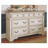 Signature Design by Ashley B743-31 Realyn Dresser Chipped White Elevating the art of traditional cottage styling, the really dresser is your dream bedroom retreat realized. Antiqued two-tone aesthetic blends a Chipped White with a distressed wood finished top for added charm. Framed drawer fronts and decorative corbels add refinement, while bail pulls in a dark bronze-tone finish lend a classic touch. This item is NEW. Please come Preview! No Refunds After Item Has left the Building. Verify the condition of your Item before you leave, Thanks. LARGE ITEMS MUST BE PICKED UP ON THE SCHEDULED NIGHT OF PICKUP. WE WILL NOT HOLD THEM. NO EXCEPTIONS. MSRP: $ 717 (43) |