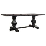 ACME Morland Dining Table - - Vintage Black Superior craftsmanship and nice details make the Morland dining collection a centerpiece for any dining area. The rectangular table top is supported with a double pedestal and trestle base, making it unique and durable. Paring the parson chairs with tufted backrests, this charming set will be a timeless possession for any household. Chairs sold separately. This item is OPEN BOX -DAMAGE ON BOTTOM OF TABLE TOP - SEE ADDITIONAL PHOTOS - 2 BOXES. Please come Preview! No Refunds. Thanks. LARGE ITEMS MUST BE PICKED UP ON THE SCHEDULED NIGHT OF PICKUP. WE WILL NOT HOLD THEM. NO EXCEPTIONS. MSRP: $ 565 |