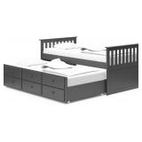 StorkCraft Marco Island Captain's Bed with Trundle and Drawers - Twin (Gray) The Strokcraft Marco Island Twin Captain's Bed features a pull-out twin trundle bed with three functioning spacious drawers to bring style and functionality to any bedroom. Made from high-quality solid hardwood and composites, the Marco Island Captain's Bed is sturdy and built for years of enjoyment. The Marco Island is also versatile as the included twin-size trundle bed with three functioning drawers can easily be wheeled in and out for maximum storage space. Offered in multiple rich, non-toxic finishes, the Storkcraft Marco Island Captain's Bed is the ultimate choice for any bedroom. This item is INCOMPLETE - 3 BOXES OUT OF 4. Please come Preview! No Refunds. Thanks. LARGE ITEMS MUST BE PICKED UP ON THE SCHEDULED NIGHT OF PICKUP. WE WILL NOT HOLD THEM. NO EXCEPTIONS. MSRP: $ 600 |