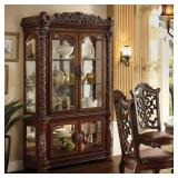 Acme Furniture Vendome Curio Cabinet – Cherry Just a lovely as its contents, the Acme Furniture Vendome Curio Cabinet – Cherry is a masterful display piece for all your finest heirlooms. This towering curio cabinet features a double-door lower cabinet with a single shelf and a larger upper double-door cabinet with three additional shelves. Each shelf is made from clear tempered glass and provides a wide area for storage of pictures, statues, and more. The cabinet frame comes crafted from poplar hardwoods and medium-density fiberboard with carved pillar sides and a beautiful crown accent made from fiberglass resin. The piece arrives in your choice of available finish. This item is INCOMPLETE - TOP (HUTCH) ONLY. Please come Preview! No Refunds. Thanks. LARGE ITEMS MUST BE PICKED UP ON THE SCHEDULED NIGHT OF PICKUP. WE WILL NOT HOLD THEM. NO EXCEPTIONS. MSRP: $ 1945 |