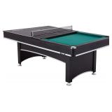 Triumph Phoenix 7’ Billiard Table with Table Tennis Conversion Top for a Game of Pool or an Action-Packed Table Tennis Match The Triumph Phoenix Billiard Table with Conversion Top gives you the choice to play two games on one full-size table. Challenge your opponents to a classic game of pool or an action-packed game of table tennis on the included conversion top. While other conversion tables often sacrifice playability, this 7-foot table maintains its quality on both tables. The table tennis conversion top comes equipped with EVA pads for the underside of the table tennis table, which protect the top rails of the billiard table. Below the table, leg levelers ensure your table is perfectly flat even when the floor is not. The set includes all accessories required for both games: the billiards accessory set includes 2 - 57” billiard cues, a set of 2.25” billiards balls, triangle, brush, and chalk. The table tennis accessory set includes 2 paddles, 2 table tennis balls, and a net post set. Enjoy two classic games in one without sacrificing quality with the Triumph Phoenix! This item is NEW. Please come Preview! No Refunds After Item Has left the Building. Verify the condition of your Item before you leave, Thanks. LARGE ITEMS MUST BE PICKED UP ON THE SCHEDULED NIGHT OF PICKUP. WE WILL NOT HOLD THEM. NO EXCEPTIONS. MSRP: $ 421 |