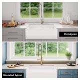 Kraus KFR1-33GWH Turino 33-inch Fireclay Farmhouse Apron Reversible Single Bowl Kitchen Sink with Bottom Grid in, White Color Experience authentic Italian craftsmanship with the Torino fireclay series from Kraus. Handcrafted in Italy with locally quarried materials, Torino farmhouse sinks exemplify a stunning union of time-tested quality and high-end contemporary style. Engineered with straight sidewalls and tight radius corners for maximized bowl space and a pronounced rectangular apron shape with a look of modern simplicity. Featuring a smart reversible design, the sink can be installed with either a modern flat apron front or a traditionally-inspired rounded apron. Using advanced glazing technology to create a durable non-porous high-gloss finish, Torino sinks offer easy maintenance and unmatched protection against scratches and stains. Kiln-fired at high temperatures of 2300°F, Kraus proprietary fine fireclay blend boasts a dense composition that makes this sink incredibly durable and highly resistant to impact and thermal shock. Unlike competitor sinks made from coarse grain material full of impurities, ultra-fine high grade Kraus fireclay allows for a perfectly even finish that is not susceptible to cracking or crazing. Featuring solid core construction, Torino Series sinks are extremely sturdy and easily stand up to heavy use, unlike many competitor sinks with a hollow core. Each sink is finished with an extra-thick layer of luxuriously glossy enamel glaze that is resistant to scratches and stains, and will not yellow or fade over time. Heavy dishes, big messes, and hot cookware are no problem – this sink can handle it all For over a decade, Kraus has been on a mission to transform ordinary spaces into extraordinary kitchens and bathrooms. Inspired by the people and places around us, every innovative product is designed to support your lifestyle and bring quality and value into your home. We love what we do, and it translates every time you unbox a Kraus product. This item is NEW. Please come Preview! No Refunds After Item Has left the Building. Verify the condition of your Item before you leave, Thanks. LARGE ITEMS MUST BE PICKED UP ON THE SCHEDULED NIGHT OF PICKUP. WE WILL NOT HOLD THEM. NO EXCEPTIONS. MSRP: $ 618 |