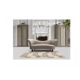 Mont Blanc Sofa in Quilted Taupe Velvet by Chic Home This sofa is an updated take on the classic kidney - shaped sofa. This luxurious sofa is beautifully curved with a quilted back, flared arms and a tight seat. Ornate espresso finished turned wood legs complete the look. Perfect for the living room, lounge and den. Beautiful design abounds on the mont blanc sofa. From its subtle, kidney-shaped frame and flared shelter arms to its luxurious velvet upholstery and turned wooden legs, every detail makes the mont blanc a dramatic standout. This beautiful statement piece is perfect for your living room, den or office. This item is OUT OF BOX - DAMAGE - SEE 2ND PHOTO. Please come Preview! No Refunds. Thanks. LARGE ITEMS MUST BE PICKED UP ON THE SCHEDULED NIGHT OF PICKUP. WE WILL NOT HOLD THEM. NO EXCEPTIONS. MSRP: $ 1209 |