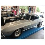 Where to start ??? YOU DO NOT want to miss this GREAT 3 day sale !! Highlighted by a 1969 Camaro Coupe - fully restored - 396 engine with 375 hp - gray with black stripes $ 48,500. Oversized recliner, end / accent tables, mirrors, cast iron vintage figures, ceramic face jugs, leather sofa, lamps, TV stand, flat screen tv, books, antique armoire, area rugs, coca cola pieces, kitchen items, small appliances many in original boxes, cuckoo clock, nascar, sports and movie memorabelia, bar stools, regulator clock, shotguns and rifles, original hand made light fixtures (mason jars and piping), cast iron cookware, rockers, microwave, outdoor metal decorations, vintage ploy and tractor wheels, bird baths, metal outdoor chairs / tables and gliders, United Power 9500 watt generator, porcelain advertising signs (Champion, Coke, Sun Drop, Crush and more), large industrial fan, unique tail gate benches (chevy and jeep), barber chair, pay telephone, wood drink crates, tractor seat stools, coke and pepsi machines, LOADS of tools, pneumatics, tools boxes, power and hand tools, vise, battery charger, anvil, arc welder and 2 large storage areas yet to be unloaded !! |