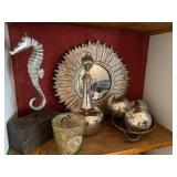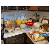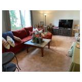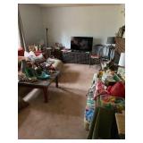 * Dining table, hutch * Vintage chairs, loveseats * Marble top round coffee table * Flat screen TVs * Contemporary chairs, decor * Vintage furniture * Sectional sofa * Ladies' clothing * Coffee tables, end tables * Vintage dresser, highboy, nightstands * Queen bed * Daybeds (one trundle) * vintage lamps * Kitchen ware * Butcher block table with 4 stool/chairs * decor * artwork * vases * Seasonal * vintage end tables * Round pedestal table * vintage toys * Wooden vintage hall bench * floor lamps