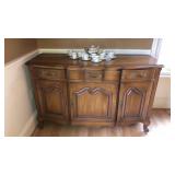 This online auction features furniture such as a foyer table, buffet, bookcase, dining room table and chairs, china cabinet, buffet, display case, dresser, bunk bed, cedar chest, barrel end tables, bedframe, antique high chair, bar stools and more, lawn care tools, shop vac, garden pots, tile cutter, table saw, scrap wood, shelving, Sentry safe, vases, chandelier, lamps, silverplate, glassware, clock, Capodimonte and much more!