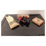 This online auction features a wood shelf, barn-like door, tools, football-shaped crockpot, silverware, beakers, industrial fan, vintage magic kit, pool table, china, chairs, lighted gingerbread house, Nintendo 64 VR glasses, Dyson vacuum antique typewriter, Thermos grill, mirror, lamps, wall hangings, decor, holiday decor and much more!