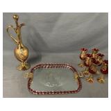 Venetian Ruby/Gold Decanter w/ Glasses |