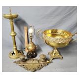 Copper Finished Lamp & Candlesticks |
