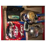 Four cases of glass traffic signal lenses, pin-up art, coins, framed artwork to include Owen Gromme, Nintendo 64 console, Gameboy Advance, beer advertising, cast iron pans, marbles, Legos, slot machine, Nascar items, extreme weather military sleeping bag, Wolf's Head gas station service caps, concrete bird bath and flower urn molds, hand and power tools, International Harvester tool box and oil can, jewelry, large outdoor movie banners, Blue-Point tool carts, multiple Shop-Vac's, Modine natural gas shop heater, McCulloch chainsaw, furniture, Christmas decor and much more. Items still being added and photographed.