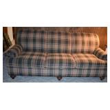 8. Maroon Tufted Leather 3 Seat Arm Sofa - In Good Condition 90x38x36