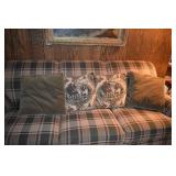 11. Pair of Stuffed Brown Fabric Arm Chair Recliners - Showing Some Wear (wear to head area) - Overall Good Condition 40x43x45