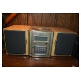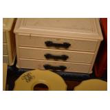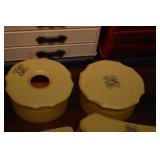 388. 3 Tier Folding Display, Parlor Chair, 3 Tier Display and Pot Holder w/ Sunflowers