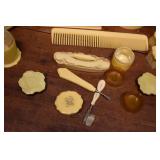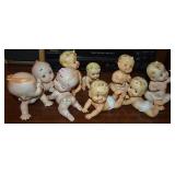 437. Black American Shakers and Boy On Urinal Plus Other Small Figures and Glass Basket