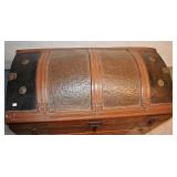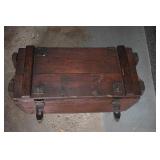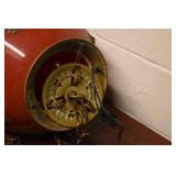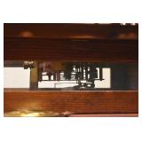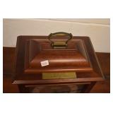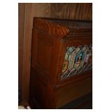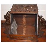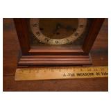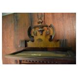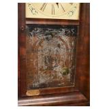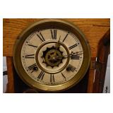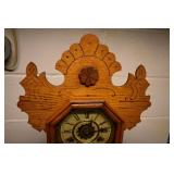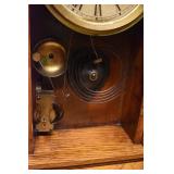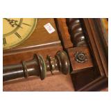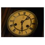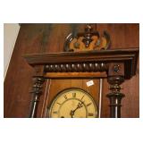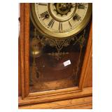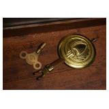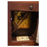 14. Oak Regulator Key Wind Wall Clock w/ Beveled Lead Glass Door