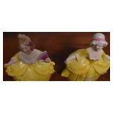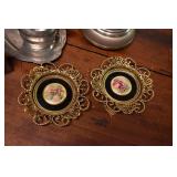 50. 4 Porcelain Blue w/ Gold Accent Figural Decorated Dishes - One is Damaged
