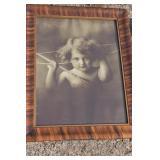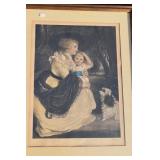 26. Framed Victorian Print Girls w/ Rabbit