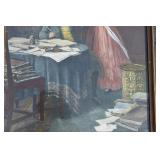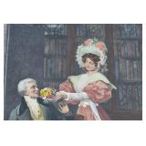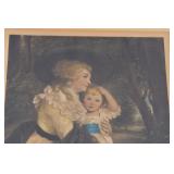 53. 2 Framed Victorian Style Prints - Children Playing Peek a Boo and Woman Artist Signed In Pencil