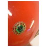 74. Hand Painted Custard Glass Base Oil Lamp w/ Unusual Burner Assemble and Etched Glass Shade