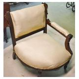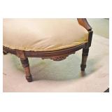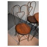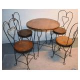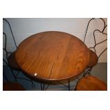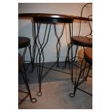 428. Unusual Metal Table 42x27 and Very Ornate Balloon Back Arm Chairs 49" H