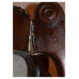 7. Maroon Tufted Leather Arm Chair and Ottoman - In Good Condition 48x38x36 Ottoman 30x24x16