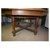 2. Mahogany Drop Leaf Table w/ 4 Leg Carved Base (2 Leaves) 23x44.5x30 Closed, 50x44.5 Open (2 Leaves 15" Each) Comes w/ 8 Highly Carved Dark Mahogany Chairs