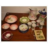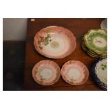 443. Assorted Decorated China - Dragonware, Hand Painted Floral Plates, Cups w/ Saucers, Etc.