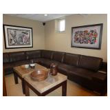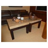 - Pair custom tables w/ thick marble tops & leather wrapped bases