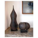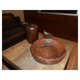 - Jan Barboglio carved wood bowl with iron bird