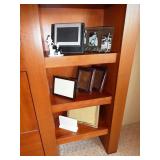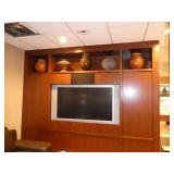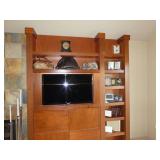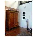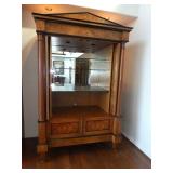 - Classic style burlwood lighted bar armoire with mirrored back